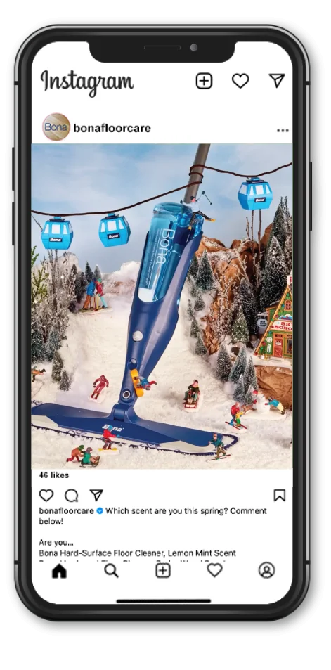Our social media content services include organizing and producing full day shoots, complete with actors, videographers, photographers, professional lighting rigs, food and mess stylists, hair and makeup, and wardrobe. For Bona, we always leave our rental houses cleaner than when we arrived!