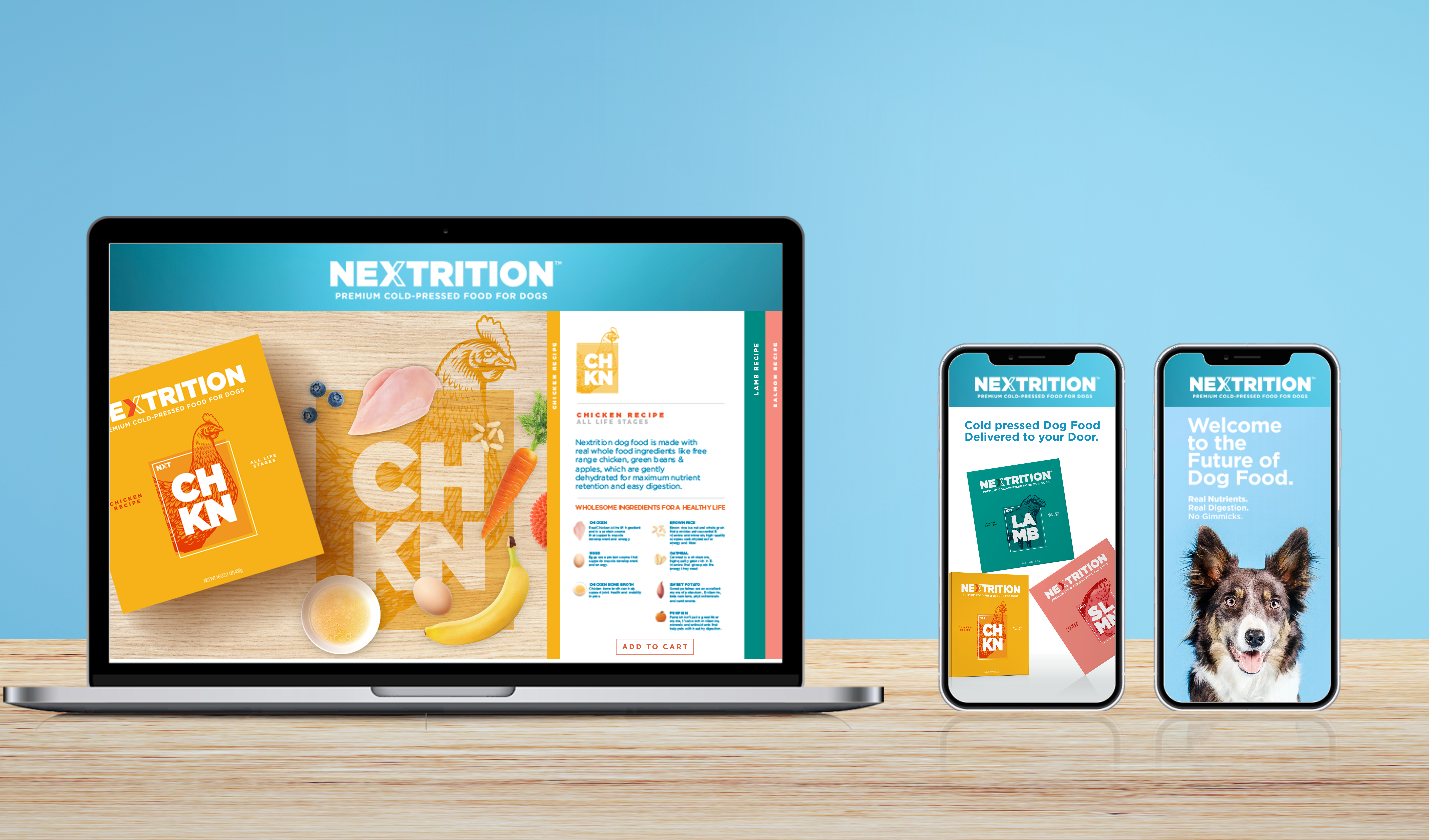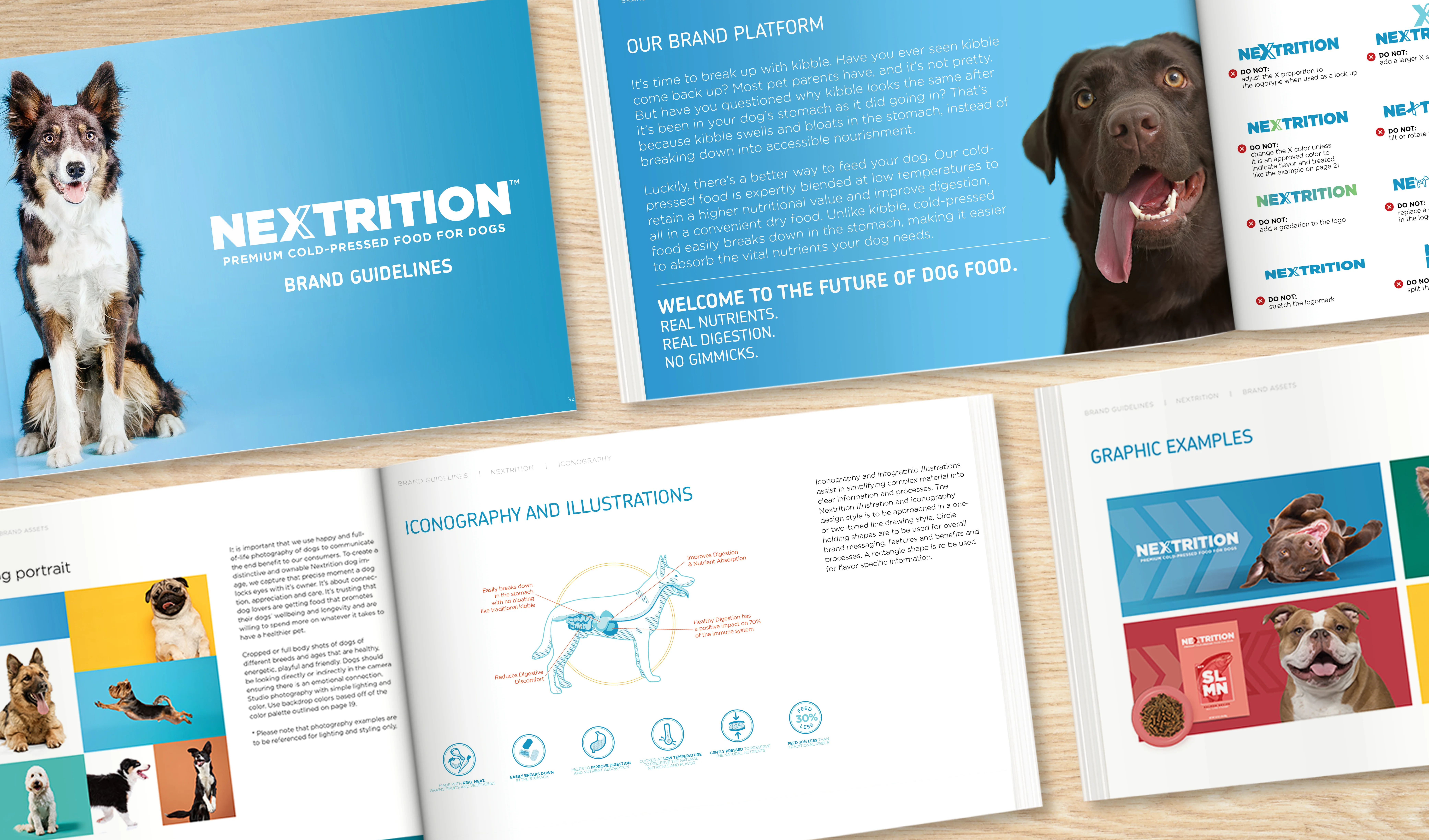 To build Nextrition, a disruptive DTC pet food brand, Smith Design began with a thorough audit and deep immersion into the pet food category, specifically leading DTC competitors, to understand visual codes, consumer behaviors, and emerging trends. From this foundation, we developed the brand positioning, crafted multiple naming territories, and created the final name and identity for this innovative new brand.